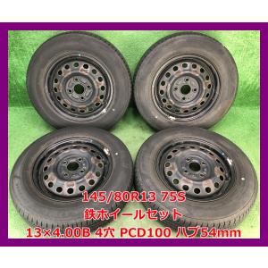 2022年製 145/80R13 75S ブリヂストン ECOPIa NH200C 中古 夏タイヤ/ 中古 鉄ホイール 4本 4穴 PCD100 ハブ54mm