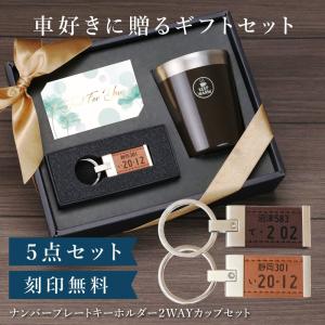 ナンバープレート 男性 誕生日 プレゼント 夫 車 バイク 鍵 キーリング PUレザー 名入れ ナンバープレート キーホルダー & 2WAY カップ セット