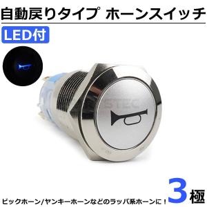 12V 24V 兼用 ホーンスイッチ 自動戻り プッシュ式 LED ブルー ON OFF スイッチ ラッパ ヤンキー ホーン デコトラ / 146-135 O-2