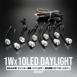 バンパー 埋め込み 1W×10連 LED デイライト ウインカー連動 ホワイト アンバー ツインカラー モデル 防水 シルバー P-54