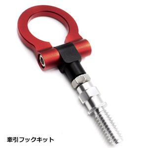 牽引 フック 可倒式 M18 × P2.5 トーイングフック アルミニウム合金 アルマイト仕上げ 車 汎用 トーフック フロント リア レッド 赤