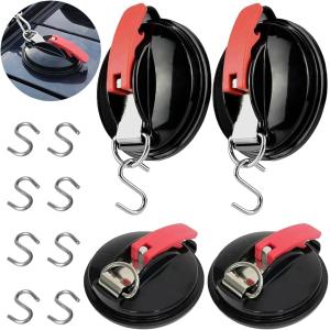 吸盤 フック 強力 車 カーサイドタープ ワンタッチ アタッチメント 固定 金具 連結 テント サンシェード (ブラック, 4個入り)