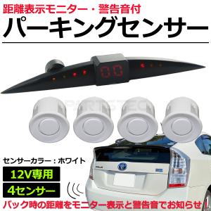 12V 車 汎用 パーキングセンサー キット ホワイト アラーム機能 + モニター付き 後付け 後方 障害物 検知 バモス ボンゴ /149-133