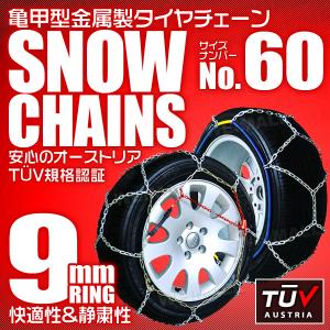 【60サイズ】タイヤチェーン 185/55R15 175/65R15 他 金属スノーチェーン 亀甲型 9mmリング ジャッキ不要 簡単装着