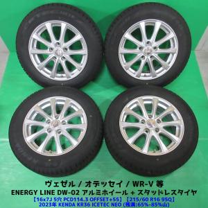 訳有 ヴェゼル 215/60R16 2023年スタッドレス 65%-75%山 KENDA KR36 ICETEC NEO 4本 5穴PCD114.3 7J +55 オデッセイ WR-V 中古新潟