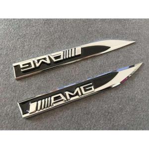 送料無料 メルセデスベンツ AMG用★2枚セット カーステッカー エンブレム ブラック 車体サイドスカート 金属製 フェンダーバッジ シール 強粘着力