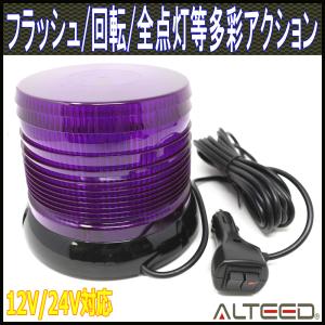 LED回転灯 紫色 LED60発円筒型 12種発光フラッシュライト パトランプ 12V24V兼用 ALTEEDアルティード