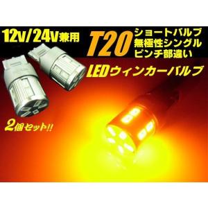 12V 24V T20 LED ピンチ部違い シングル アンバー 2個 無極性 ショート バルブ ウインカー トラック 高品質 5630 17SMD 黄