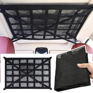 Temiry 耐荷重の改善 天井収納ネット 80*53cm 荷物落下防止 ルーフネット車 2層タイプ ファスナー付き 車用収納ネット 収納便利