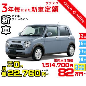 3年カーリース 新車 スズキ アルトラパン 月額22,760 円×36回 総額:819,360 円 車両価格1,514,700 円 3年後は返却・買取・延長自由に選べる