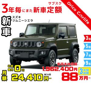3年カーリース 新車 スズキ ジムニーシエラ 月額24,410 円×36回 総額:878,760 円 車両価格1,962,400 円 3年後は返却・買取・延長自由に選べる