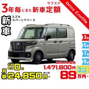 3年カーリース 新車 スズキ スペーシアベース 月額24,850 円×36回 総額:894,600 円 車両価格1,471,800 円 3年後は返却・買取・延長自由に選べる